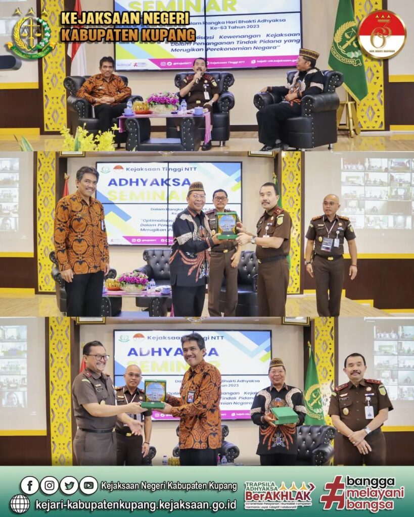 Kejaksaan Tinggi NTT menyelenggarakan seminar dalam rangka peringatan Hari Bhakti Adhyaksa (HBA) ke-63 dengan tema, “Optimalisasi Kewenangan Kejaksaan dalam Penanganan Tindak Pidana yang Merugikan Perkonomian Negara;” Kamis (13/07) di Aula Lopo Sasando Kejati NTT. Seminar diikuti oleh para jaksa dan pegawai, unsur mahasiswa serta para awak media.